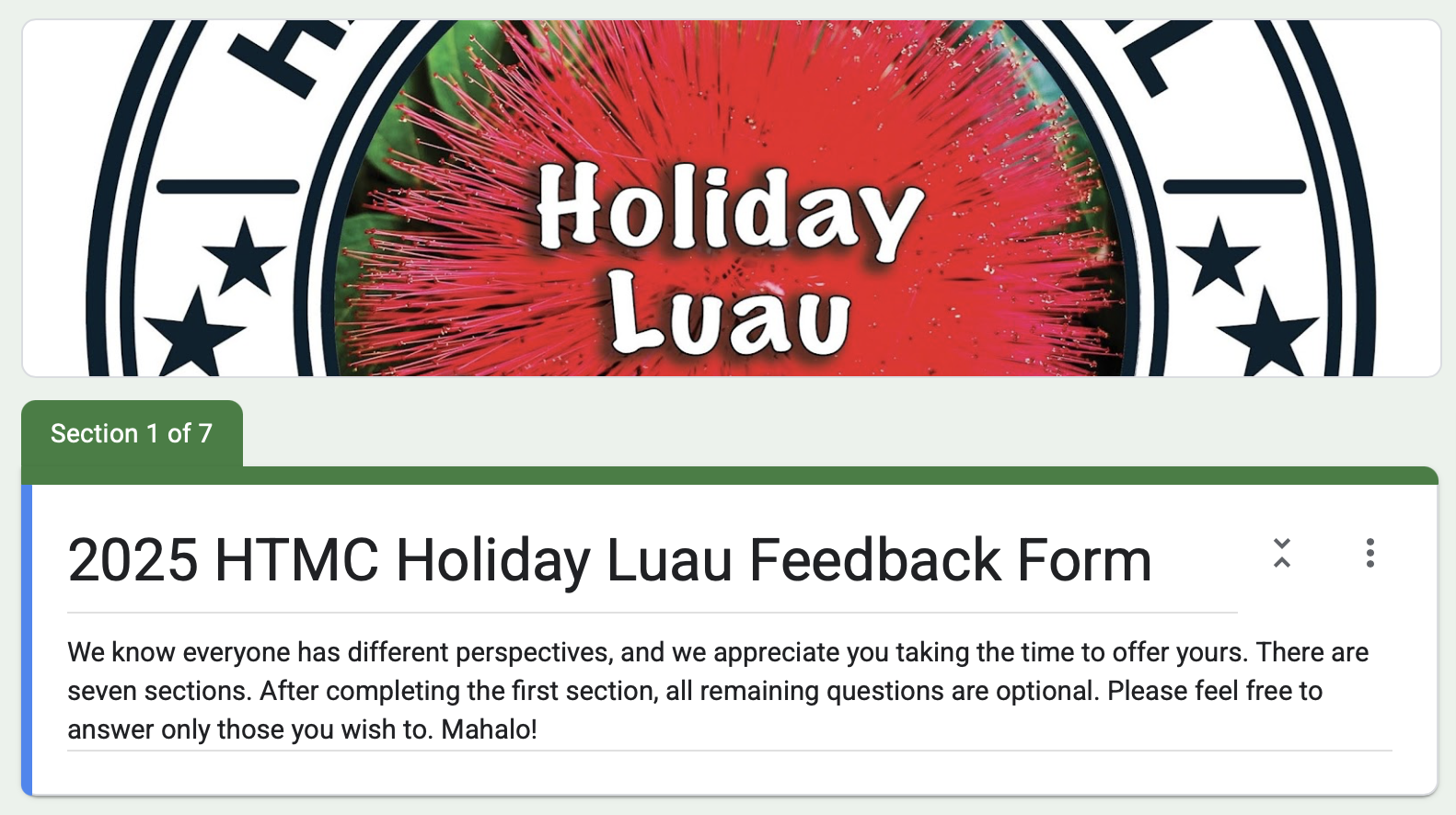 Holiday Luau Survey