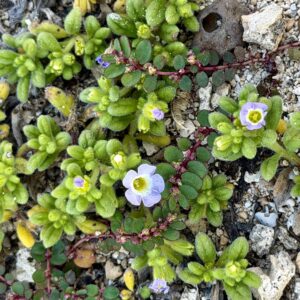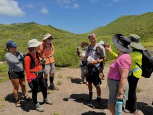 Kenji pointing out Naio (false sandalwood) and comparing non-native ice plant & ‘Akulikuli