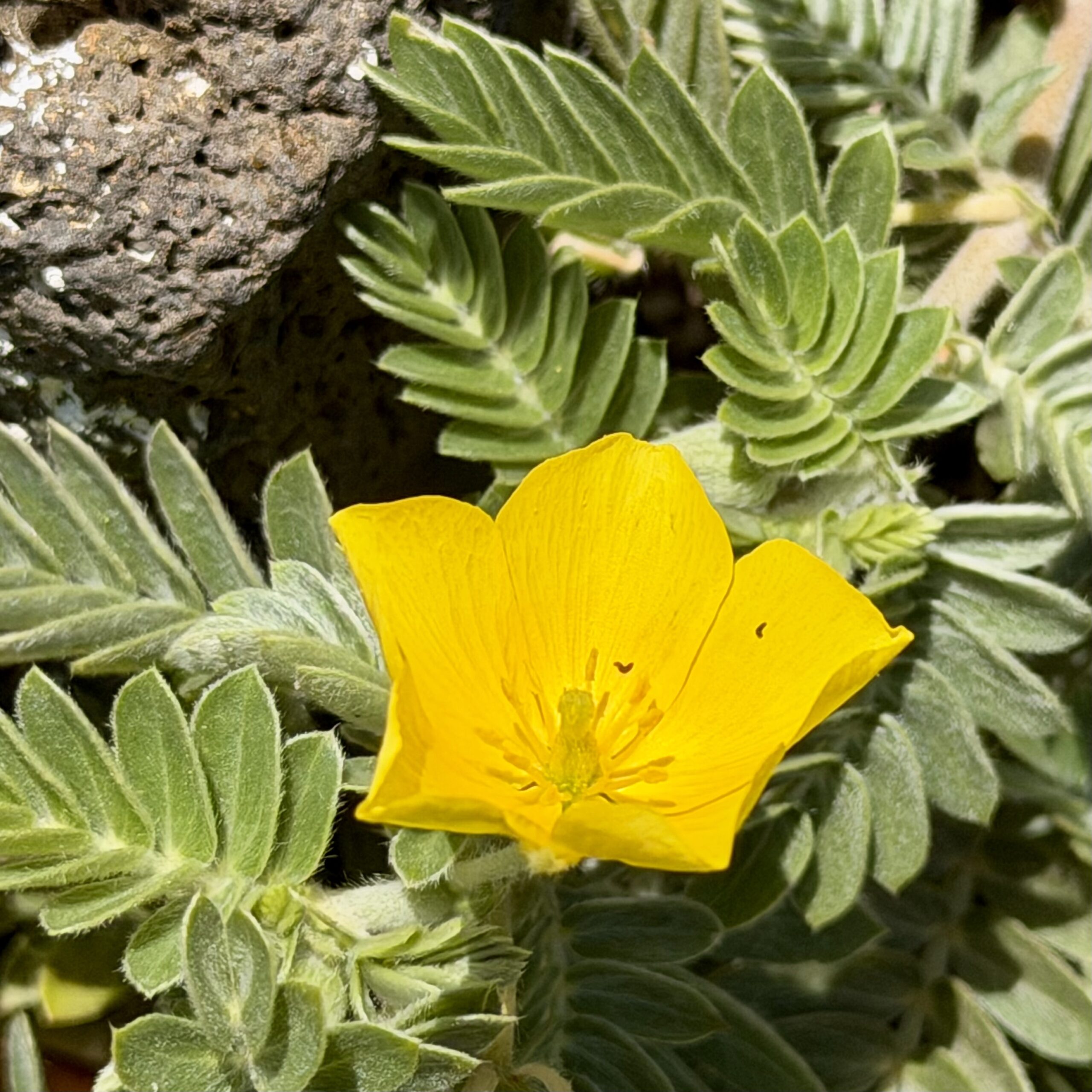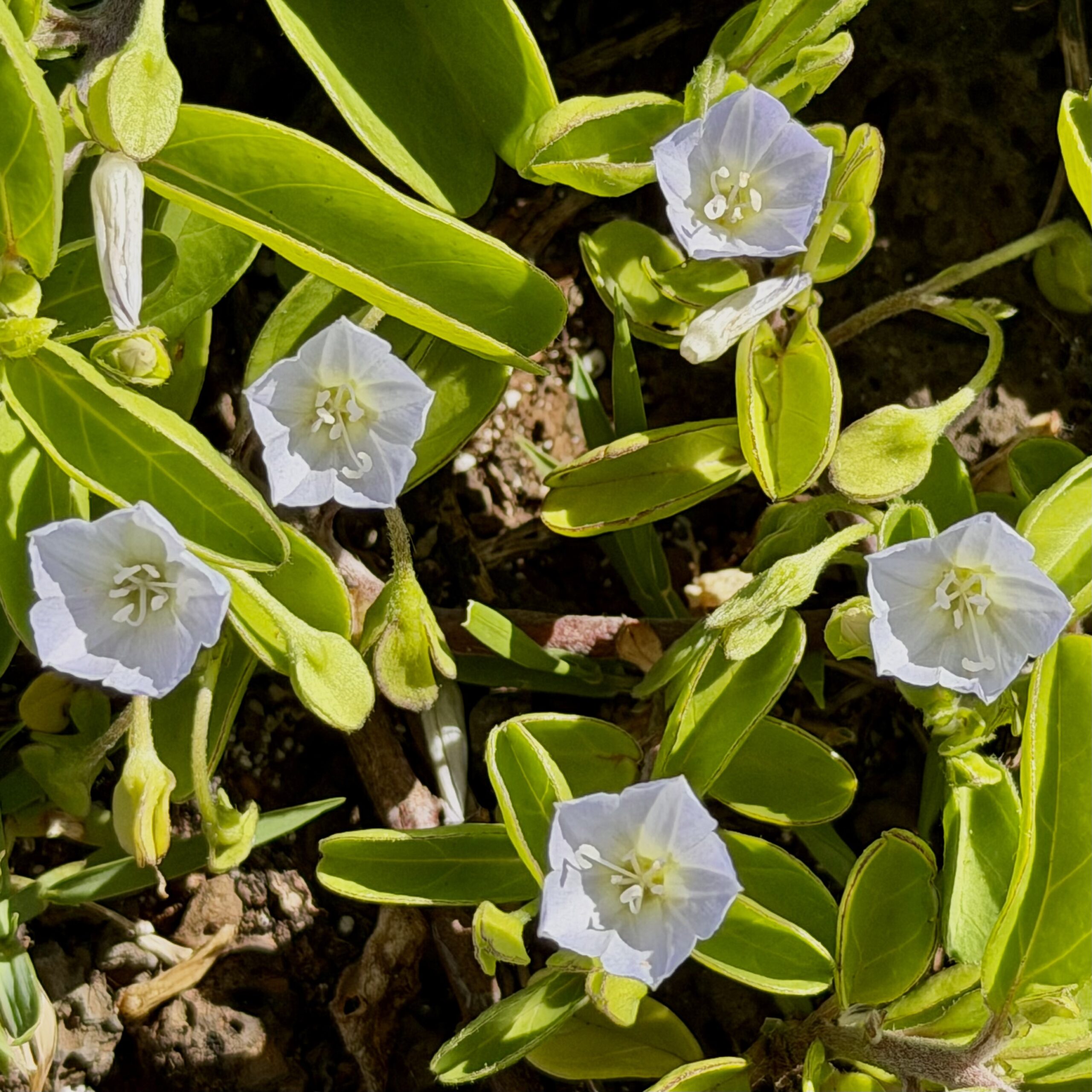 Before we set out, Kenji gave a brief history of the area. Long known as Wawamalu — meaning “shady valley” — the coast is more commonly called Alan Davis, after the rancher whose home stood here until the 1946 tidal wave swept it away. From the first steps of the walk, Kenji pointed out a new flowering plant he had never seen in this spot before, having emerged after the heavy March rains. He then gestured at the surrounding scrub — what most of us might dismiss as roadside weeds — and revealed that many of them are native plants, and that this stretch is one of the best places on the island to find coastal species.