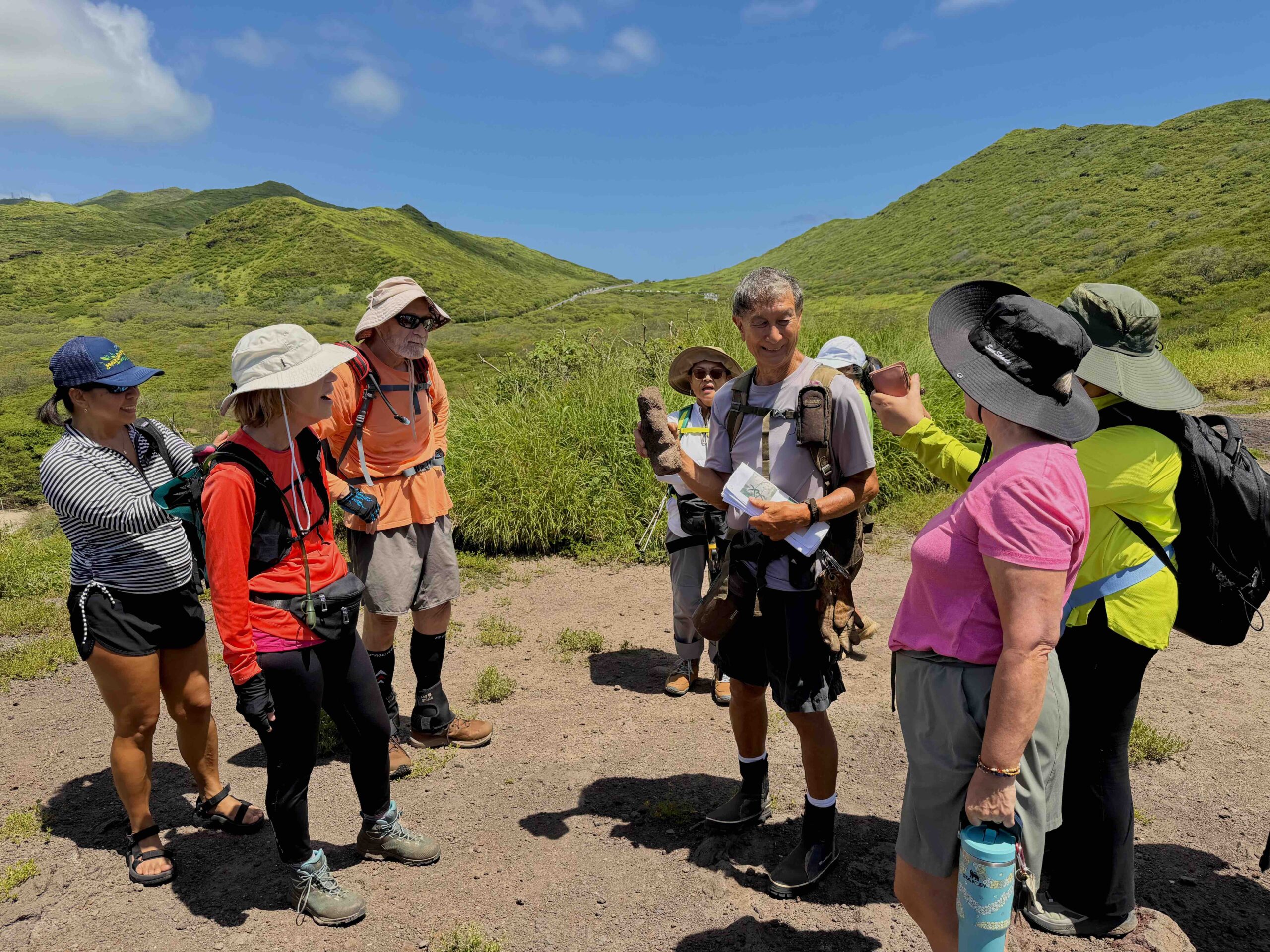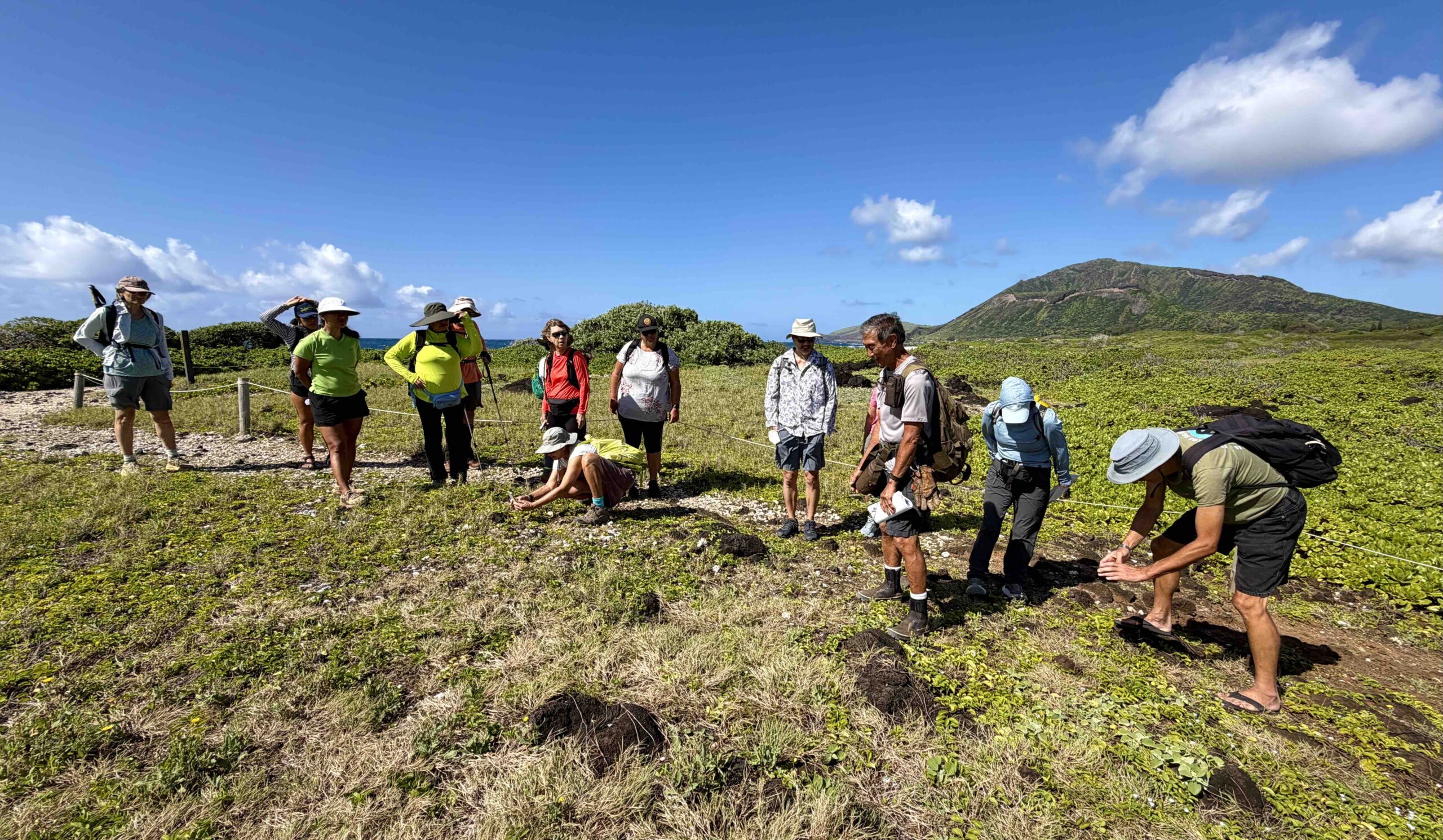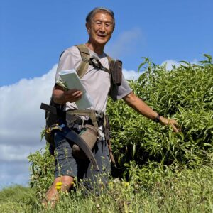 If you have ever had the privilege of going on a plant walk with HTMC member Ken Suzuki — known to most as Kenji — you will know how lucky we were to spend a morning with this impressively knowledgeable man. On Saturday, April 26th, Kenji led a group of fifteen of us along the Kaiwi Coast, a stretch he has known since childhood, when he came here to go shore fishing with his dad.